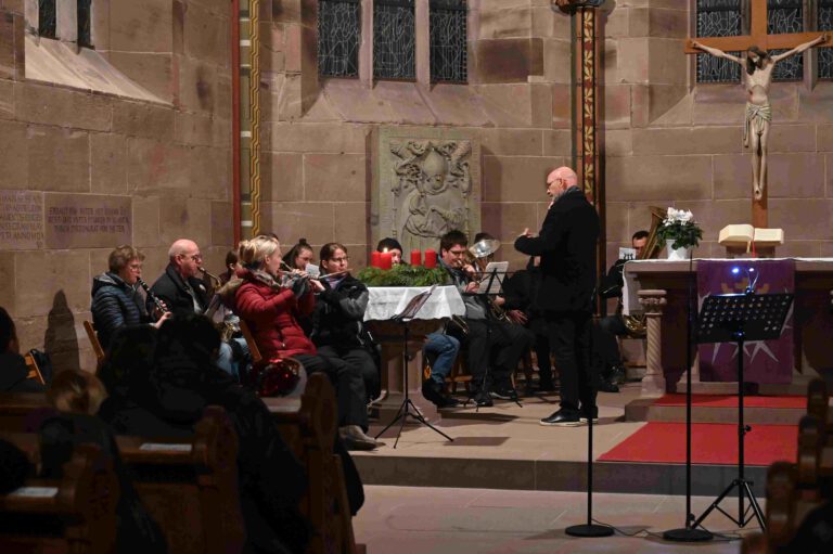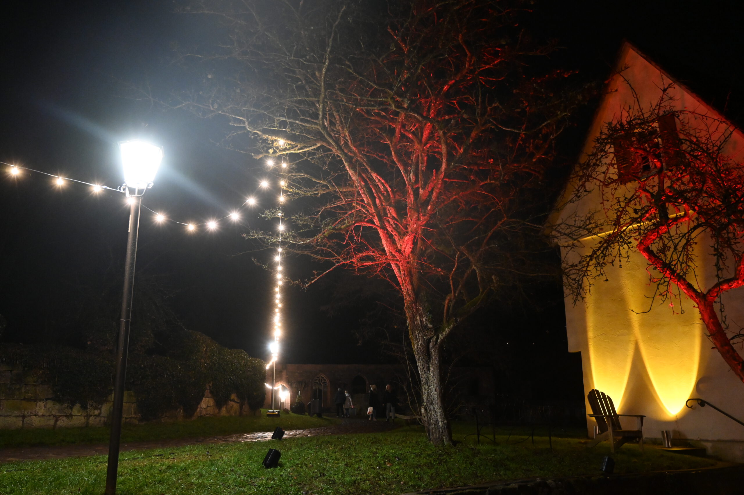 Neu war in diesem Jahr auch die Eröffnung in der Marienkapelle des Klosters. Umrahmt von adventlicher Musik der Stadtkapelle Calw sowie einigen Liedern zum Advent, die vom Chor der Grundschule Hirsau vorgetragen wurden, eröffnete Ortsvorsteherin Jacqueline Jakob sowie der neue Pfarrer der evangelischen Kirchengemeinde Hirsau, Georg Schwarz, den Markt.